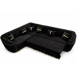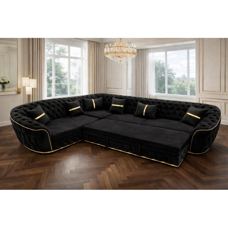 Colțar extensibil de lux negru cu insertii aurii – 300x300 cm
