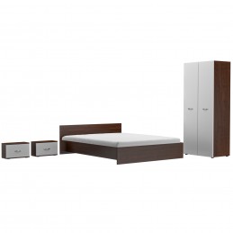 Dormitor Era Wenghe&Alb: sifonier cu 2 usi, pat 160X200 cm, 2 noptiere si saltea 160x200 cm.