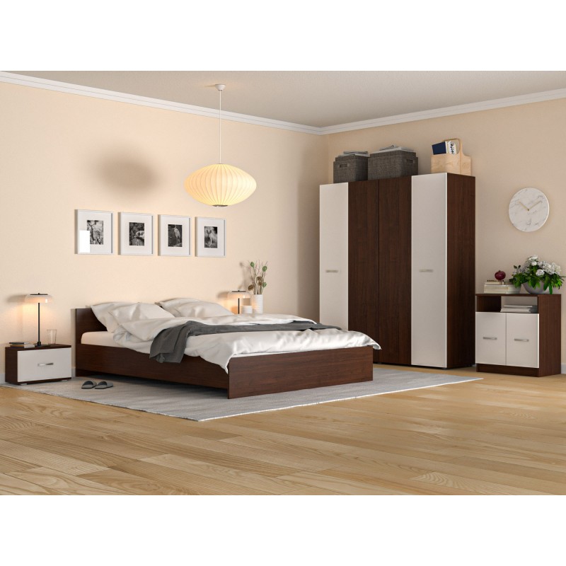 Dormitor Era wenghe&alb: Sifonier 3 usi ;pat cu saltea 160X200 cm+ 2 noptiere+Comoda Tv, pal melaminat de 18 mm. Produs in Romania!