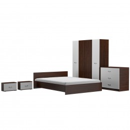 Dormitor Alex Wenghe&alb: Sifonier 4 usi , pat ,2 noptiere si comoda cu 3 sertare , pal melaminat de 18 mm.