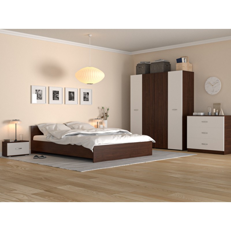 Set Dormitor Era Mixt compus din Sifonier Wenghe/alb 3 usi +pat Alb cu noptiere Wenghe/alb Produs in Romania, pal melaminat 18 mm!