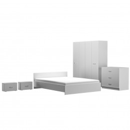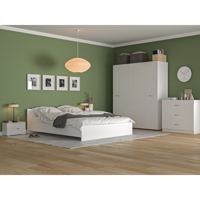 Dormitor Alex Alb : Sifonier 4 usi+Pat+2 noptiere+comoda 3 sertare din pal melaminat de 18 mm.