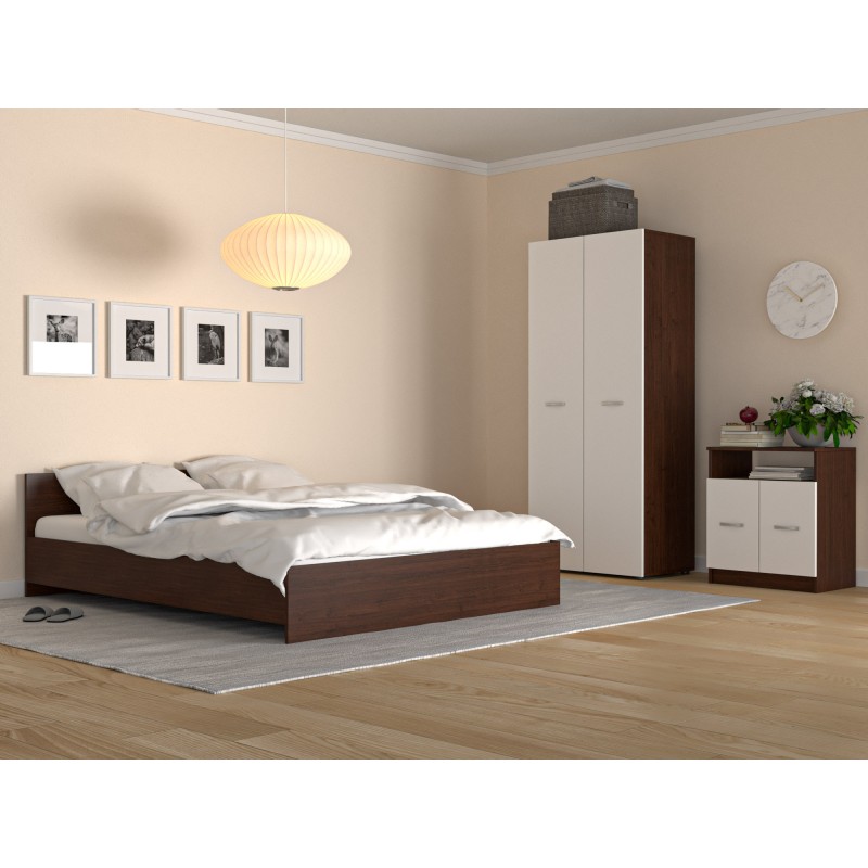 Dormitor Era Wenghe& Alb: sifonier cu 2 usi, pat + Comoda Tv, pal melaminat 18 mm.