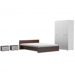 Set Dormitor Era Mixt compus din Sifonier alb 3 usi +pat cu noptiere Wenghe