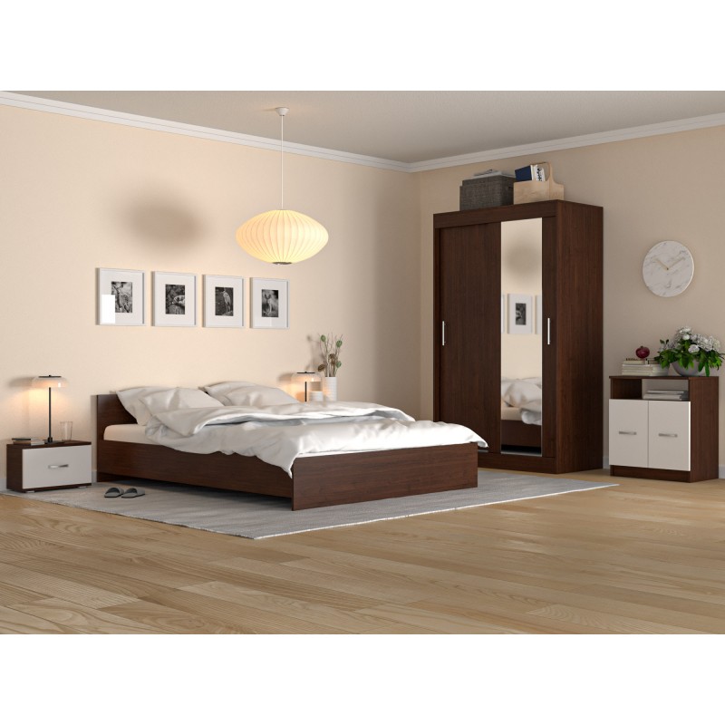 Dormitor Era Wenghe&Alb: sifonier cu 2 usi, pat 160X200 cm, 2 noptiere si saltea 160x200 cm. Produs in Romania, pal melaminat 18 mm!