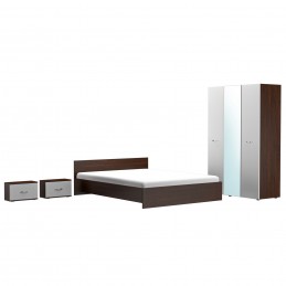 Dormitor Era Wenghe&alb :sifonier 3 usi cu oglinda+pat+2 noptiere din pal melaminat de 18 mm.