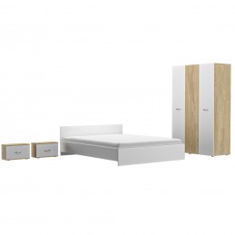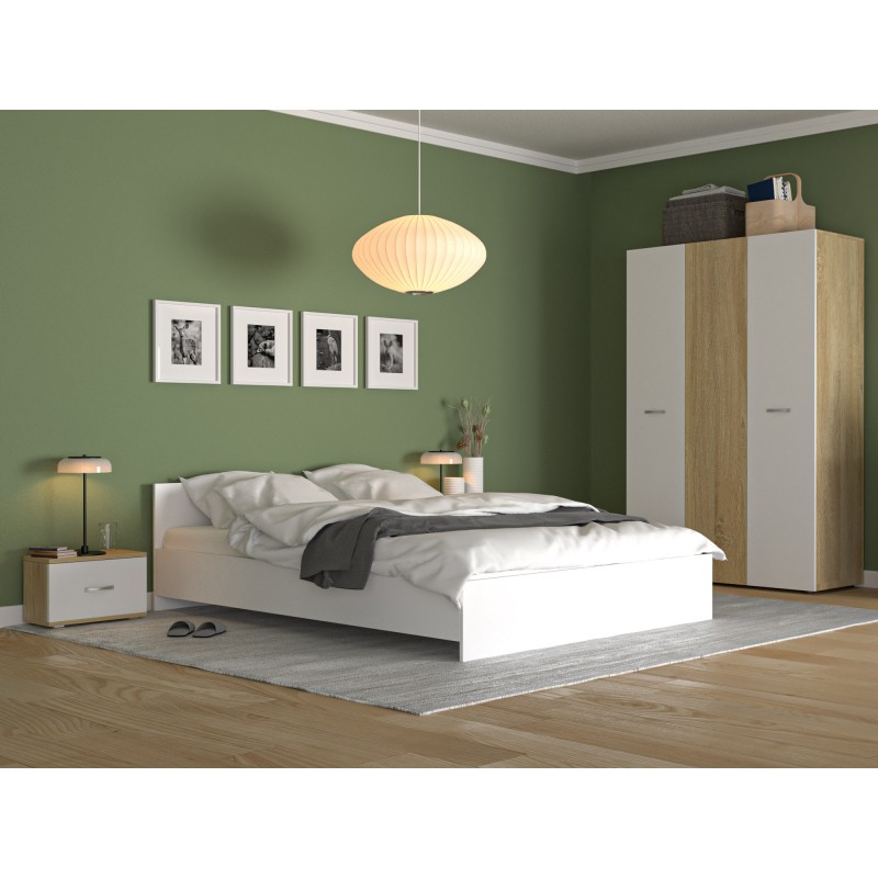 Dormitor Era Sonoma&Alb: sifonier cu 2 usi+pat + 2 noptiere din pal melaminat 18 mm. Produs In Romania!