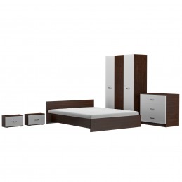 Dormitor Era Wenghe&alb: Sifonier 3 usi , 2 noptiere si comoda cu 3 sertare , pal melaminat de 18 mm.