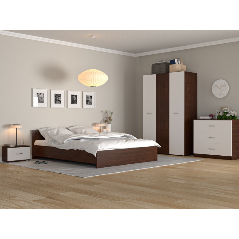 Set Dormitor Era Mixt compus din Sifonier Wenghe/alb 3 usi +pat Alb cu noptiere Wenghe/alb Produs in Romania, pal melaminat 18 mm!