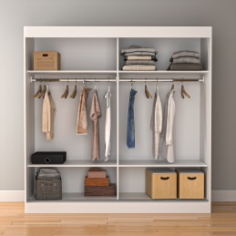 Dressing Color cu usi glisante, produs din pal melaminat 18 mm , compartimentat cu polite si bare umeras.