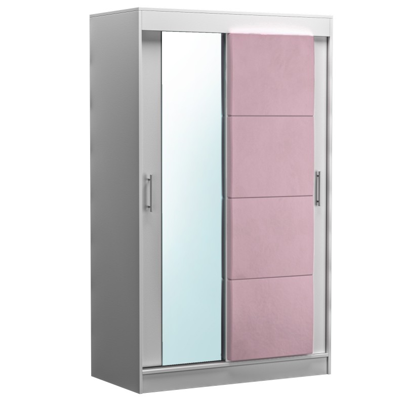 Dressing Bianco, 2 usi glisante cu oglinda, pal melaminat 18 mm si catifea roz.