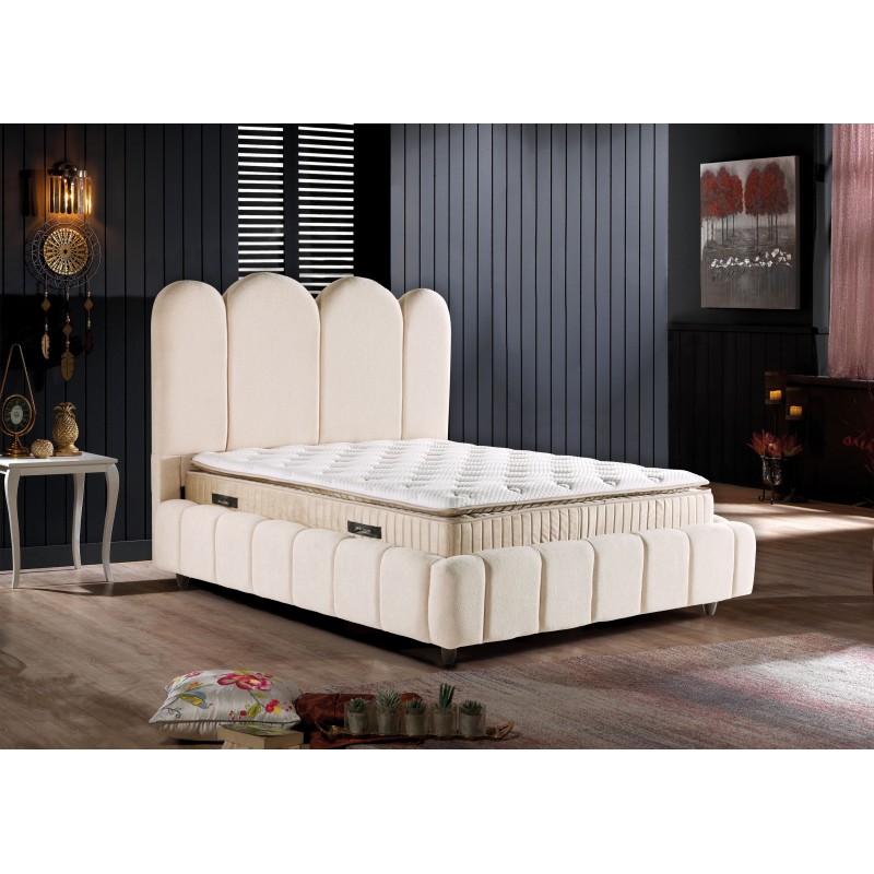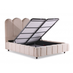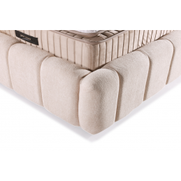 Pat tapitat Doha bej premium , somiera dubla , lada depozitare 160x200 cm.
