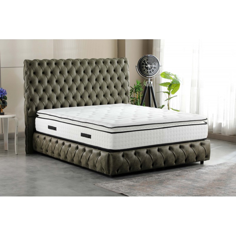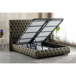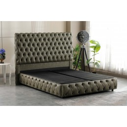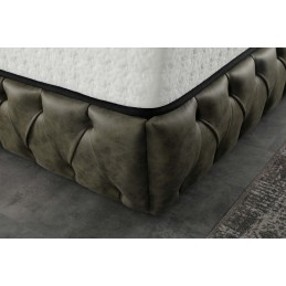 Pat tapitat Oslo verde premium model Chesterfield, somiera dubla , lada depozitare 160x200 cm.
