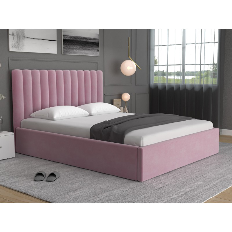 Pat tapitat Nuria 160x200 cm Catifea ,roz.