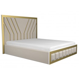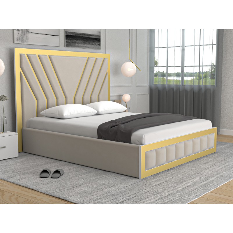Pat tapitat Safir bej 160x200 cm , catifea premium si insertii aurii