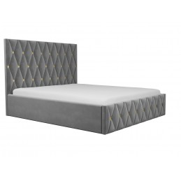 Pat tapitat Ana gri 160x200 cm , catifea premium si insertii aurii.